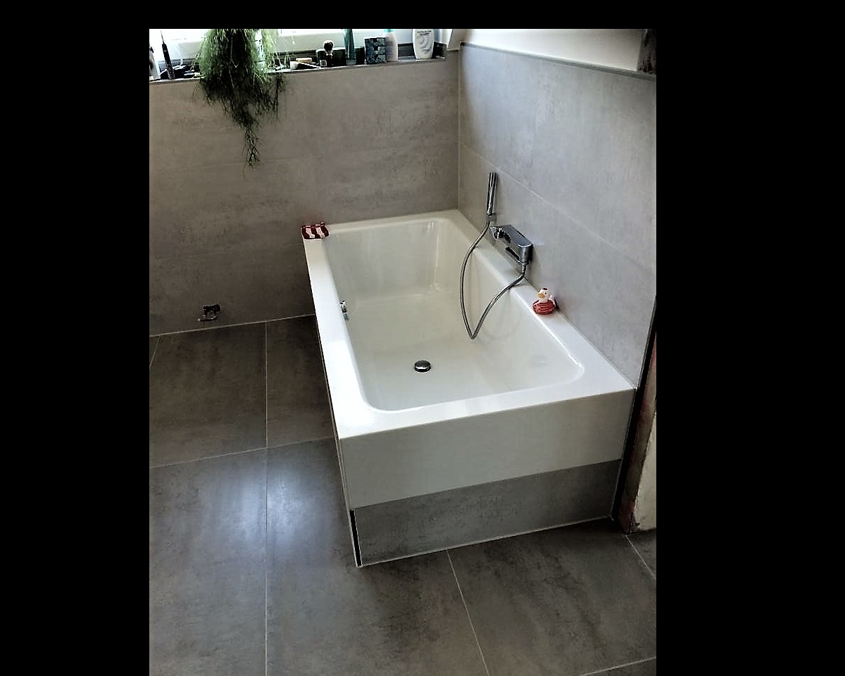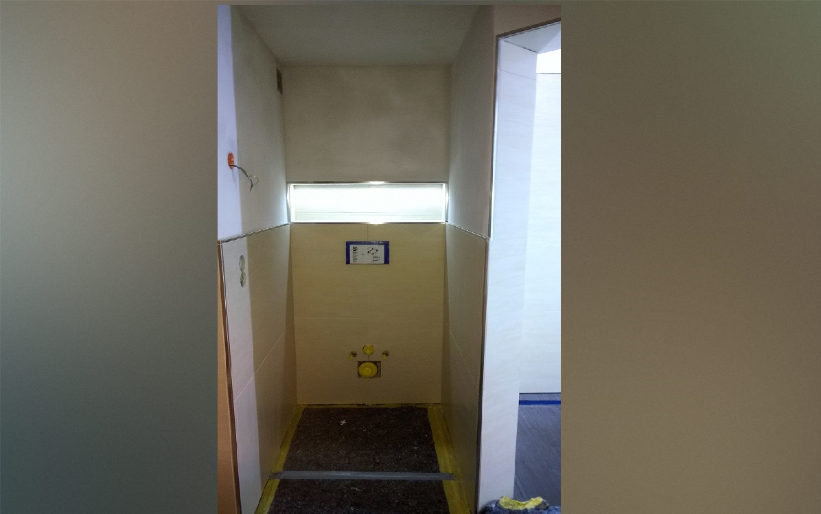 Einfassung der Dekorfliesen mit Edelstahlschienen