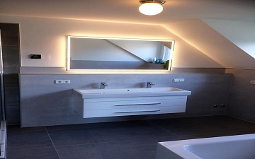 Boden Holzoptik, LED Leisten in den Ecken, LED Beleuchtete Ablage